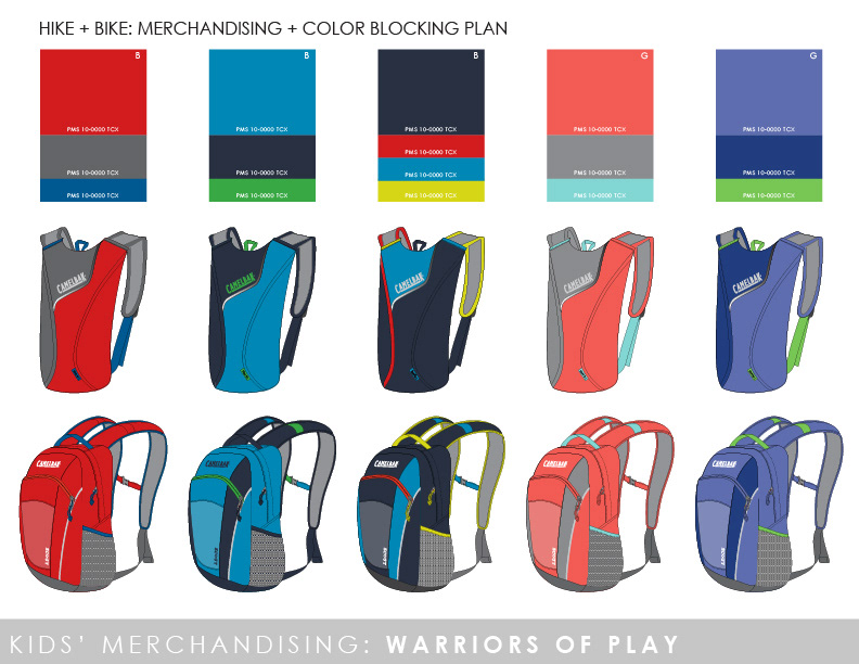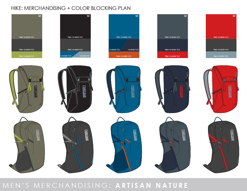 Camelbak was a great brand to partner with. We collaborated on trend, color, and merchandising for the 2010-2018 product lines. Each season, I presented relevant trends tailored to their specific end-users, creating the story that inspired each collection. I directed color merchandising, showing visually and verbally how to apply key color stories across the line. As a team, we fine-tuned each category's offering, finalizing the palette and line.