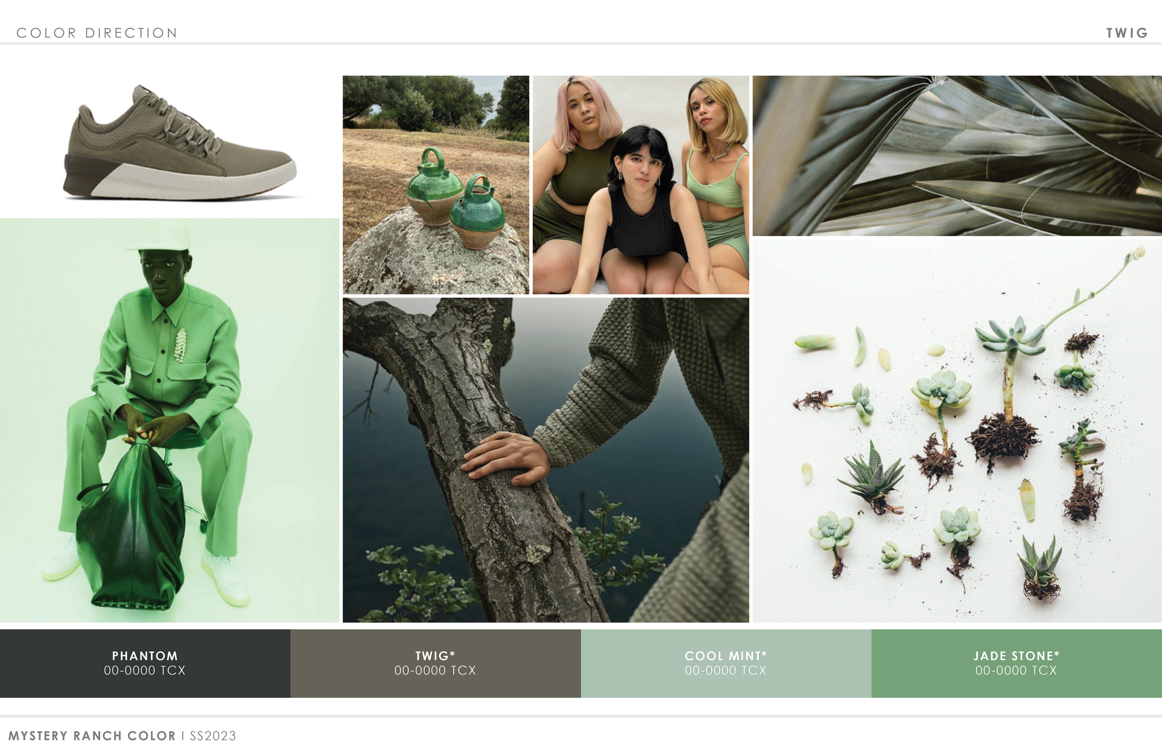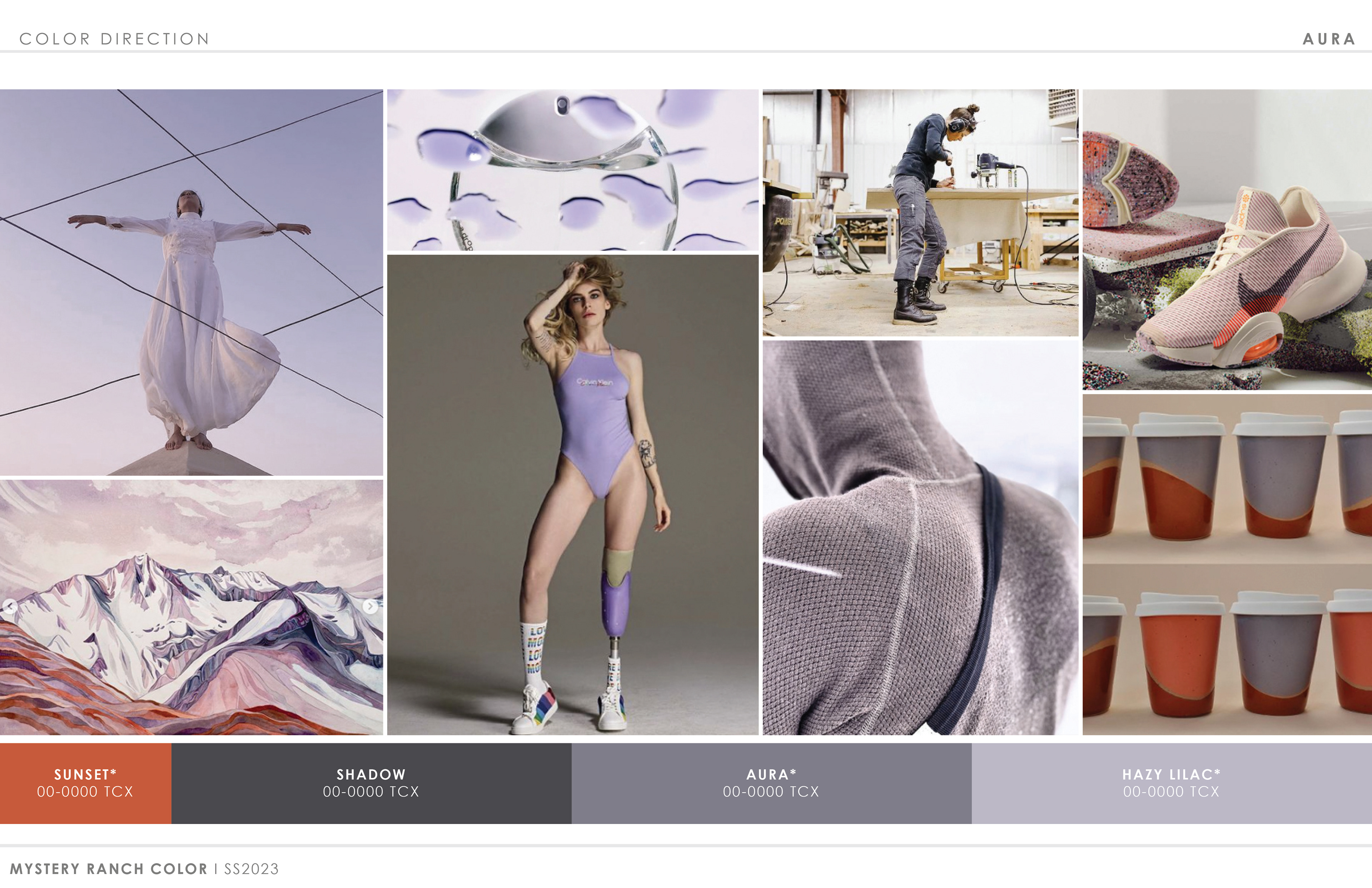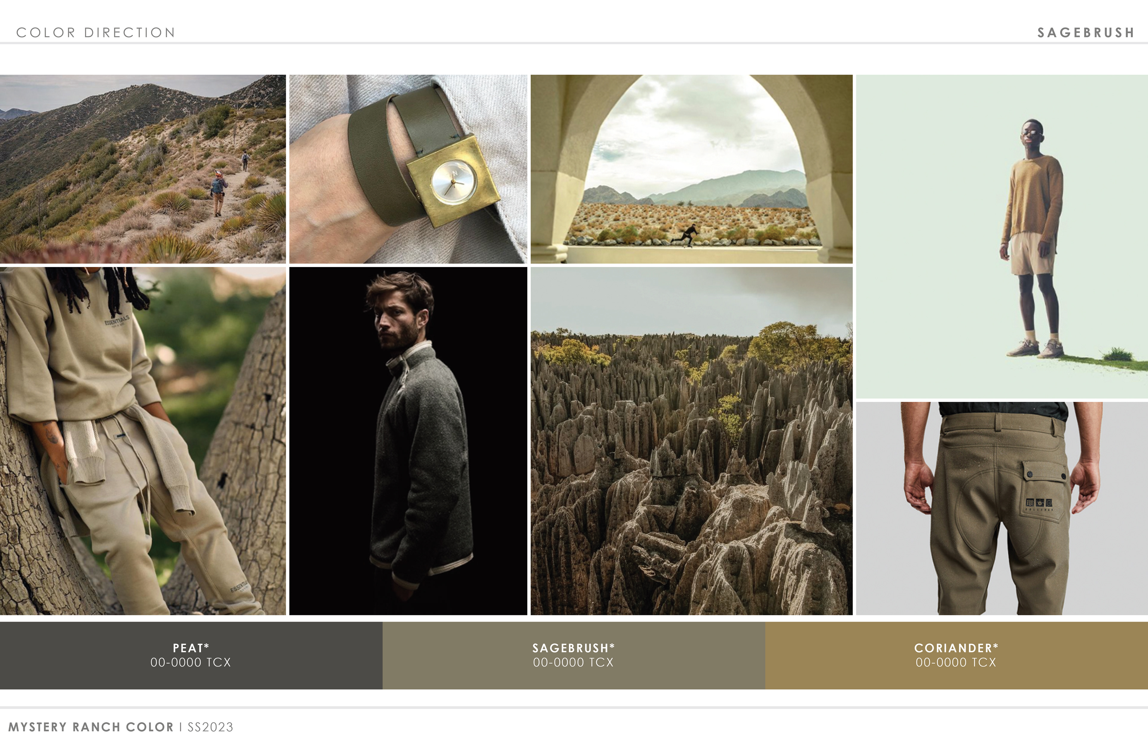 Below are photos of finished product from recent collections. Sample pages from the 2023 color trend presentation follow, outlining the initial direction that set the look and feel of the final line.